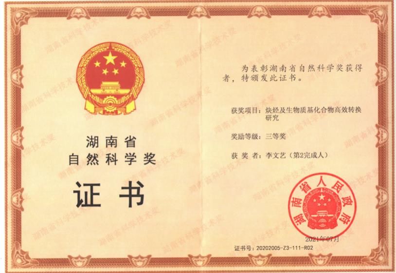 有机小分子团队共有8人组成,带头人李文艺教授,湖南省化学化工学会理事,硕士生导师。本团队主要研究内容为有机功能小分子合成方法研究,具体开展有机小分子中碳-氢键、碳-碳键以及碳-杂原子键的选择性切断与生成的方法学与规律,实现在合成化学中有用的新反应、新方法、新试剂,探索功能性有机小分子转化的途径,发展出高效合成和修饰有机功能分子的方法。主要科研项目(国家级,省级,有代表性)本团队成员主持国家自然科学基金3项,湖南自然科学基金5项,湖南省教育厅重点项目1项,湖南省教育厅创新平台开放基金1项,湖南省教育厅优秀青年项目2项,英国365上市公司“英才计划”项目支持1项。近十年,团队成员以第一作者或通讯作者在国际学术期刊《J. Am. Chem. Soc.》《Angew. Chem. Int. Ed.》《Green Chem.》《Org. Chem. Front.》《Org. Lett.》《Chem. Commun.》等国内外发表学术论文50多篇,其中SCI收录40多篇,其中一区论文20多篇;授权发明专利10多项。有机小分子团队获湖南省自然科学三等奖1项。
