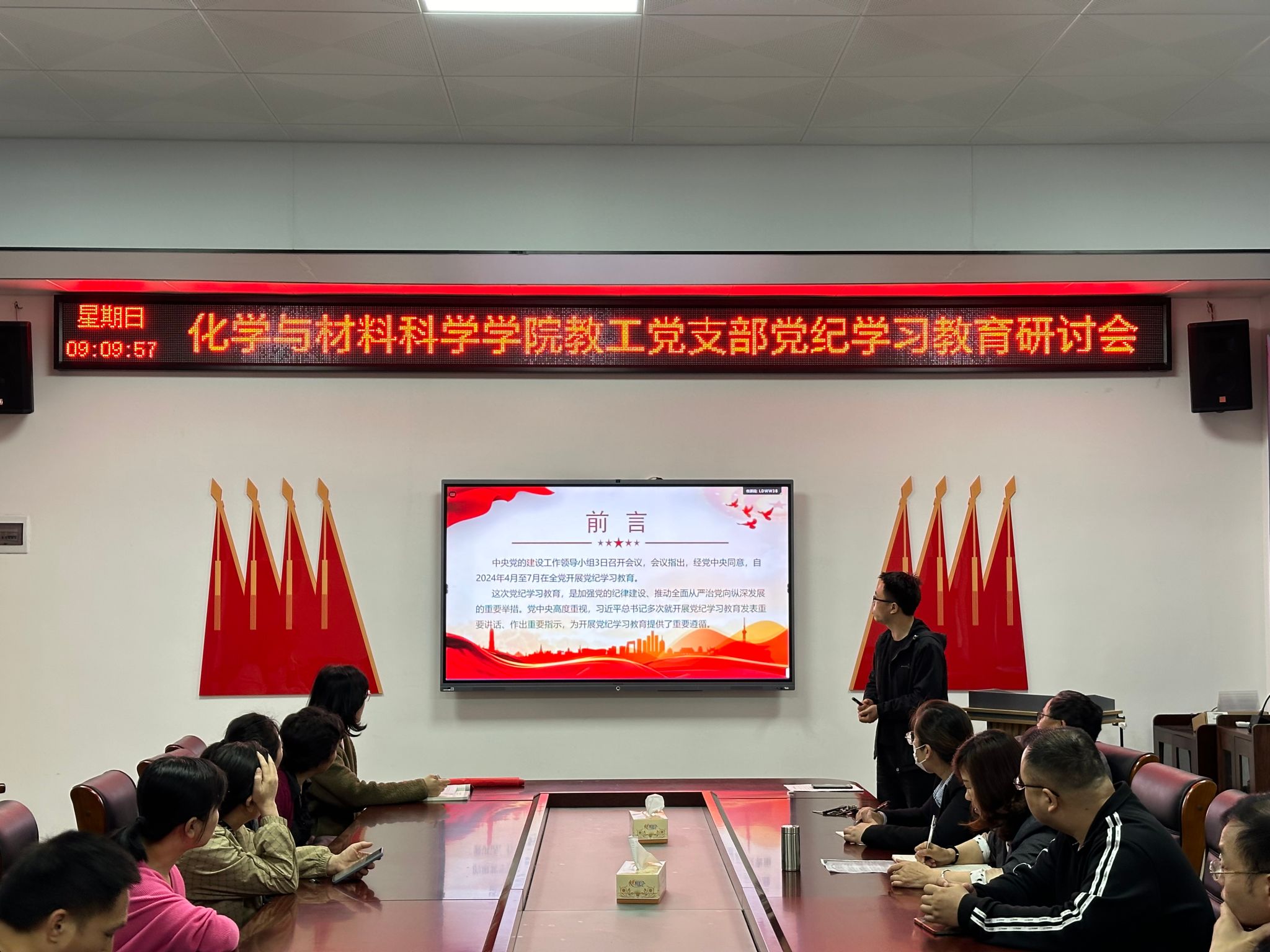 为深入学习贯彻修订后的《中国共产党纪律处分条例》 (以下简称《条例》),进一步强化全体教职工党员纪律意识、加强自我约束、提高免疫能力,4月21日上午,我院教工党支部全体成员在学院105会议室开展党纪学习教育研讨会,会议由欧亚平、钟青梅两位支部书记共同主持。