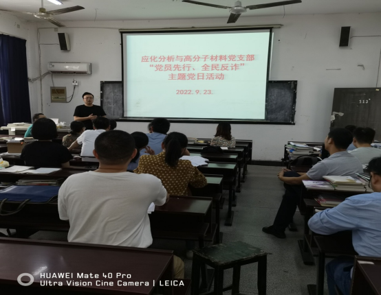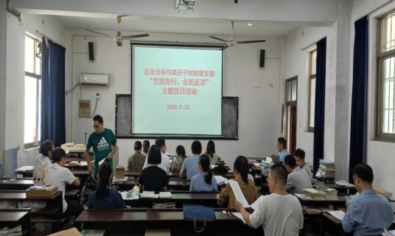 应衡阳市委组织部和学院的部署要求,2022年9月23日中午,应化分析与高分子材料支部开展了“党员先行、全民反诈”主题党日活动,活动由支部书记刘兴同志主持。首先,由支部书记组织全体党员集中学习了反电诈的政策与基本常识,让大家全面掌握了解电诈的常见手段、危害和防范技巧。其次,强调了安装“国家反诈中心”APP方法和重要性。随后,黄耿同志分享了自己被网络电信诈骗的亲身经历,让在场同志无不震撼和深感电诈的可怕。最后,支部所有党员现场签订了《不参与电信网络诈骗犯罪承诺书》。