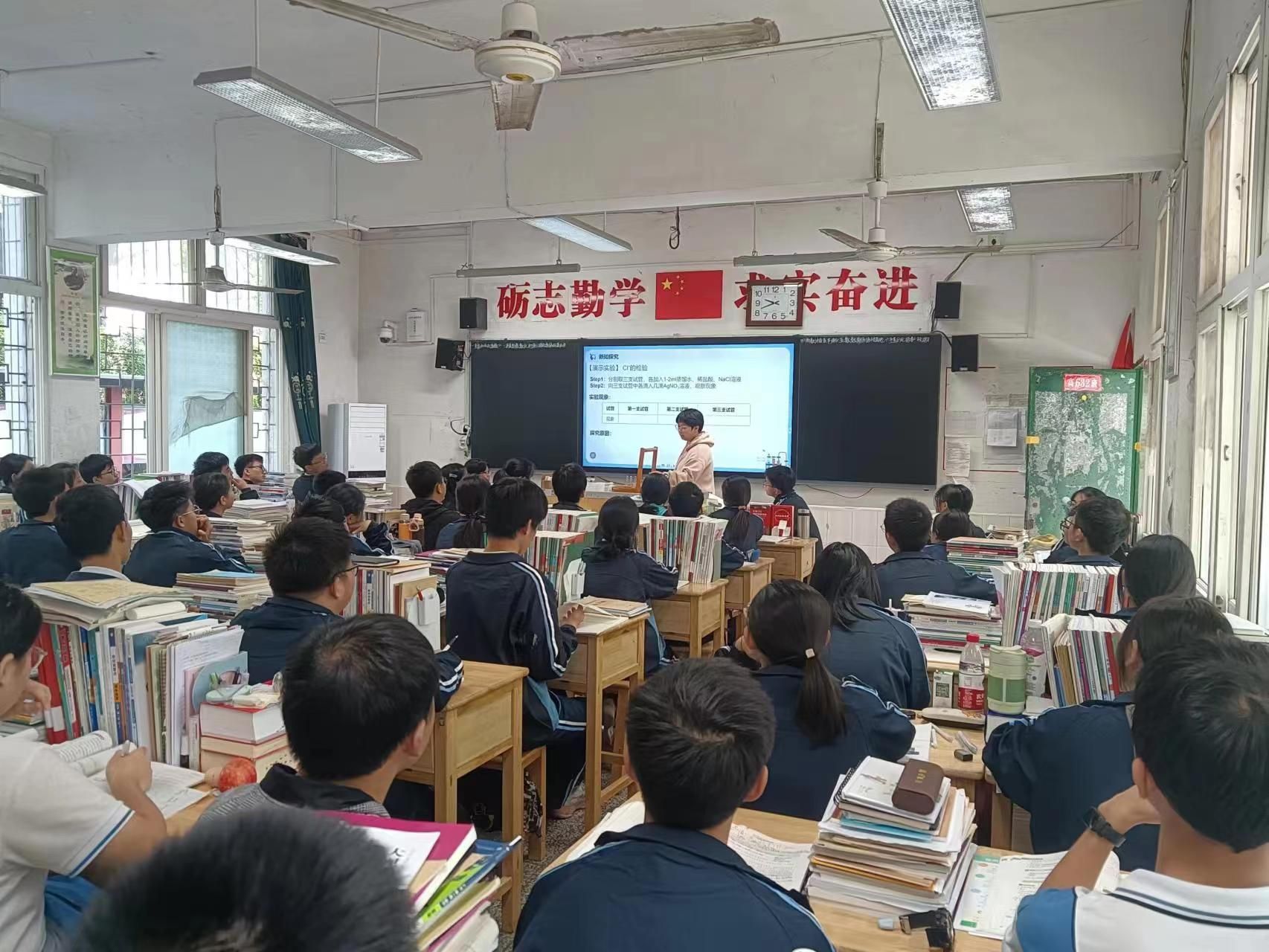 听课环节,实习生陈镜娇主讲了《氯及其化合物》一课内容充实、条理清晰、组织得体且教态自然、轻车熟路,充分展示了实习队近一个月来的实习成果,给听课领导、老师留下了深刻的印象。评课会上,衡东一中校长秦强辉、院长许志锋、书记刘梦琴以及我校教学督导张复兴教授等人先后对授课内容、难重点把握、互动环节、实验操作等具体问题进行了深入、细致的点评,表扬了优点,肯定了成绩,尤其对课堂上存在的不足进行了详细讲解,提出了改进意见,给实习学生上了一堂生动的教学范例课。