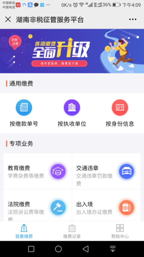 ② 进入“湖南非税征管服务平台”,选择教育缴费