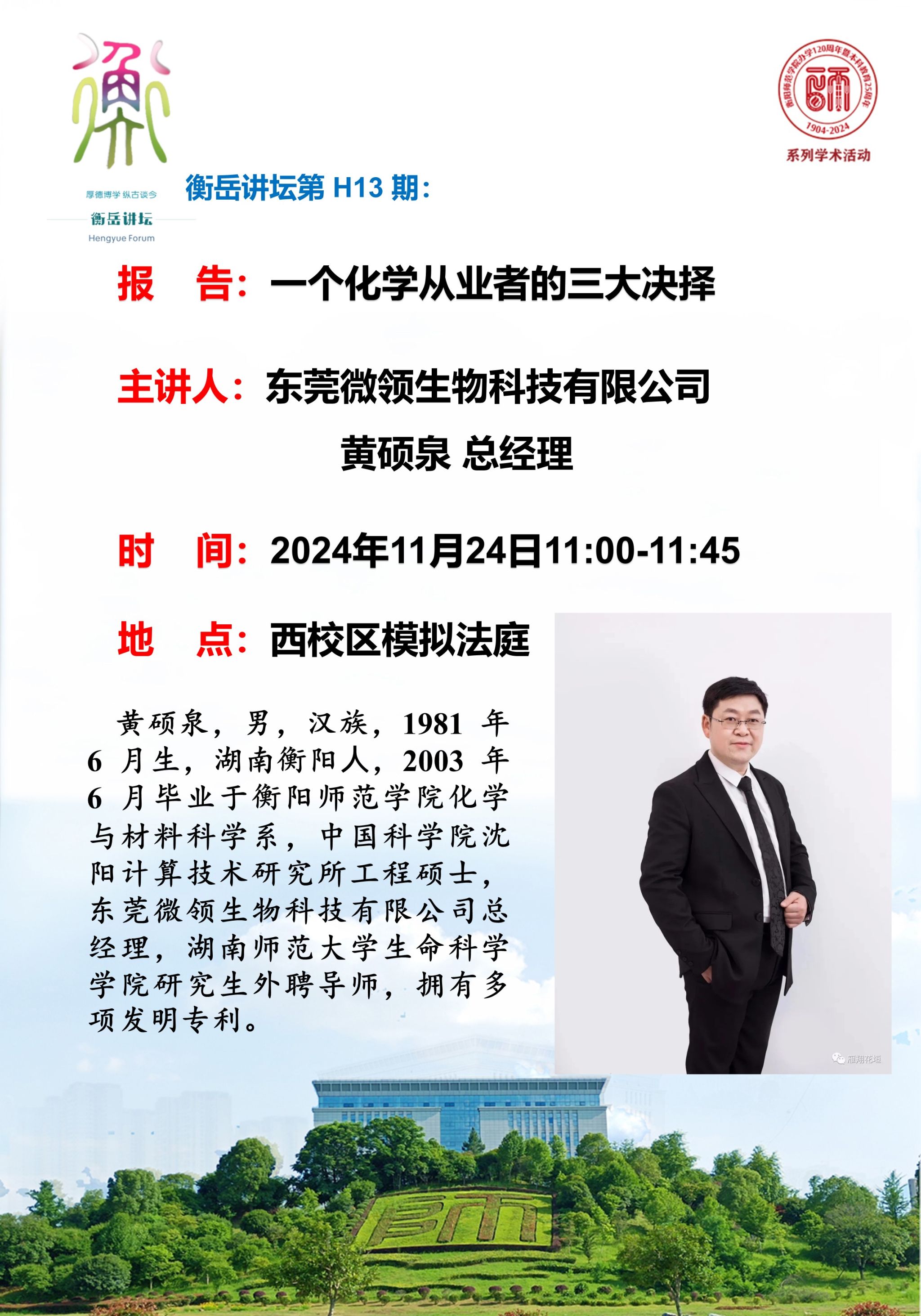 欢迎校友回家:石星波、段阿冰、黄硕泉衡岳讲坛H11、H12、H13