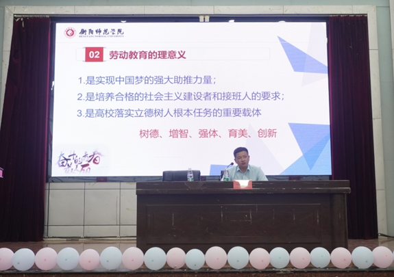 在讲座中,朱贤友书记从劳动教育的理论、劳动教育的意义和志愿服务是劳动教育的重要实践三个方面展开了讲述。授课中他特别提到了劳动的“树德、增智、强体、育美和创新”作用,总结了劳动教育的三个重要意义:一是实现中国梦的强大助推力量;二是培养合格的社会主义建设者和接班人的要求;三是高校落实立德树人根本任务的重要载体。最后,朱贤友书记指出志愿服务是劳动教育的重要实践,他为大家生动讲述了我校学生开展的西部计划、暑期三下乡等志愿活动情况,鼓励我院的同学们要积极的投身于志愿服务,在劳动中获得体验,在实践中获得经验。