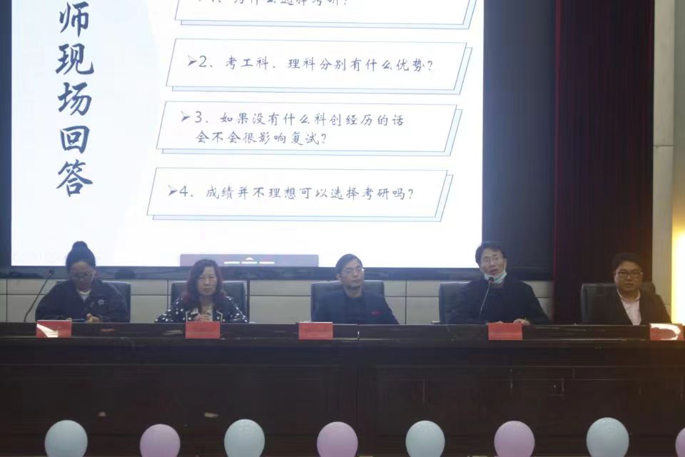 会议伊始,刘梦琴书记对我院2021届毕业生考研情况做出了汇报:2021届毕业生考研录取人数为58人,其中400分以上5人、350分以上28人、300分以上53人,6人考取985院校、16人考取211院校。并激励下一届考研学生:轻装上阵,一战成研!本次经验分享的形式多样,不仅有视频采访的形式,还邀请了五位18级“考研达人”来到现场,各位“考研达人”从自身考研经历出发,围绕着“专业和院校选择” “专业复习策略”“ 复习计划”等几个方面向学弟学妹们作经验分享。五位老师结合自身经验和近几年就业情况,对考研学生最为困惑的问题一一进行了现场解答,特别在导师选择上给了重要建议,并希望同学们面对考研要有持之以恒的耐心和不怕艰苦的决心。