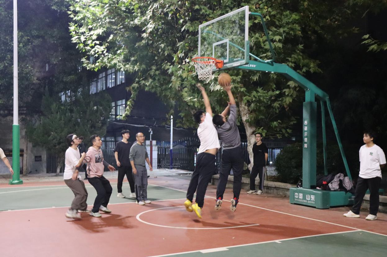 2025年11月1日晚,西校区灯光篮球场迎来了一场轻松愉快的师生篮球之约,老师和学生在篮球场上一起尽情享受运动的纯粹乐趣。