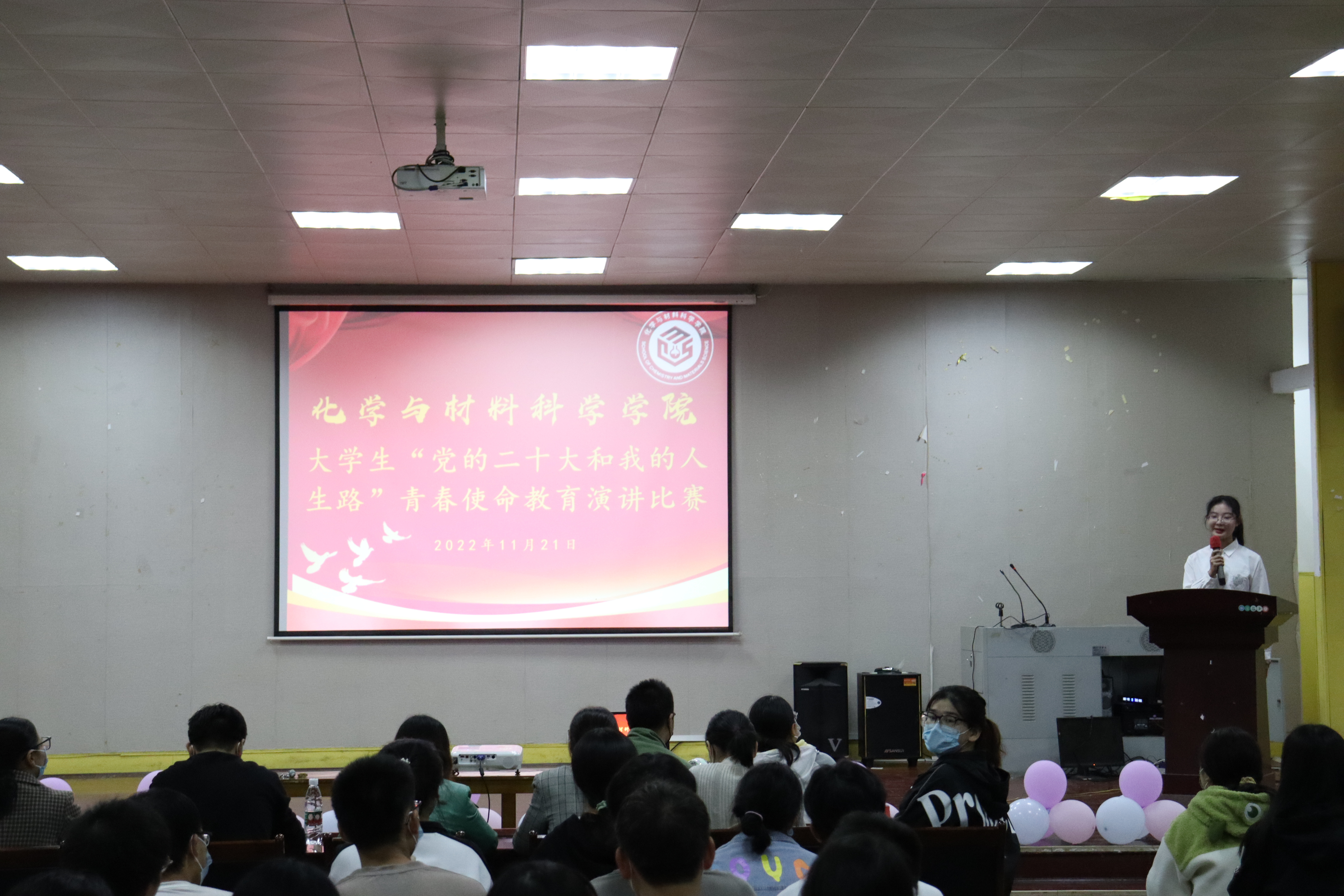 8位选手结合自己学习党的二十大精神的体会和实践感悟,从不同角度回答了“我辈青年如何在第二个百年新征程中为建功新时代交上满意的青春答卷”的问题:《坚定“两个确立”,共绘奋斗蓝图》《以青春之名,担时代之责》《青春向党,不负韶华》……选手们铿锵有力的语言,鲜明突出的主题,落落大方的表现,赢得了观众的阵阵掌声。其中,马莹同学声情并茂地向同学们讲述了黄文秀同志艰苦奋斗、为国为民的优秀事迹,以及抗疫医生彭银华舍己为人、无私奉献的感人故事,诠释了新时代青年应有的人生追求和奋斗理想,获得了本次比赛的一等奖。赛后,王逸龙同学说:“各位参赛选手将二十大精神与自我发展紧密联系,演讲具有感染力,作为观众的我为之振奋。”