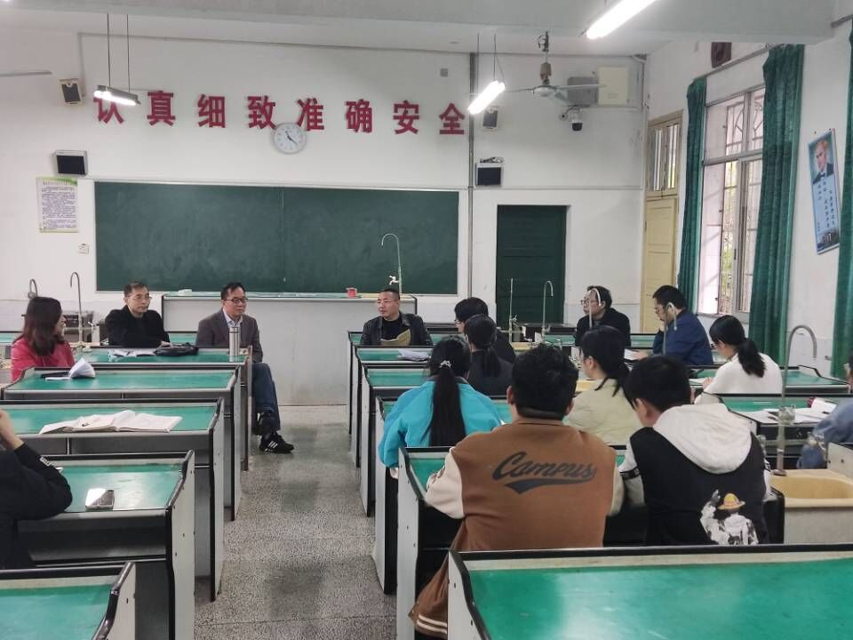 听课环节,实习生高菲讲解的“铁及其化合物”一课内容充实、条理清晰、互动热烈、组织得当,充分展示了一个多月来的实习成果,给听课领导、老师留下了深刻的印象。评课会上,我校教学督导张复兴教授、院长许志锋、一中校长朱顺利、书记刘梦琴等人先后对授课内容、板书设计、难重点把握、时间把控、互动环节、实验操作等具体问题进行了深入、细致的点评,表扬了优点,肯定了成绩,尤其对课堂上存在的不足进行了详细讲解,提出了改进意见,给实习学生上了一堂生动的教学范例课。学生纷纷表示,通过讲评,让他们茅塞顿开,感悟深刻,收获很多,对上好以后的课有了充足的信心。