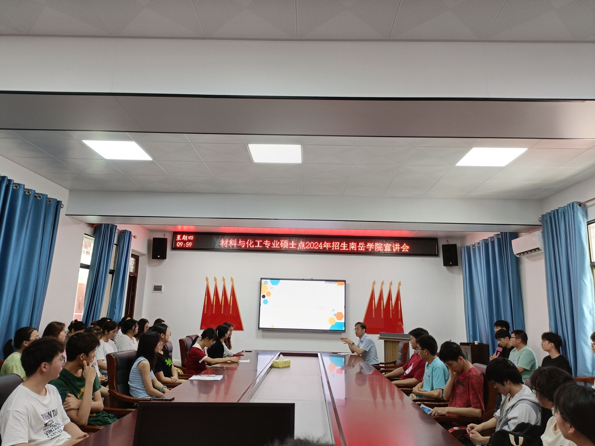 化学与材料科学院历来重视研究生招生录取工作,本次到南岳学院进行研究生招生宣讲标志着我院2024年研究生招生正式拉开序幕,热烈欢迎化学、化工以及材料等相关专业的学生报考我院材料与化工专业硕士研究生。