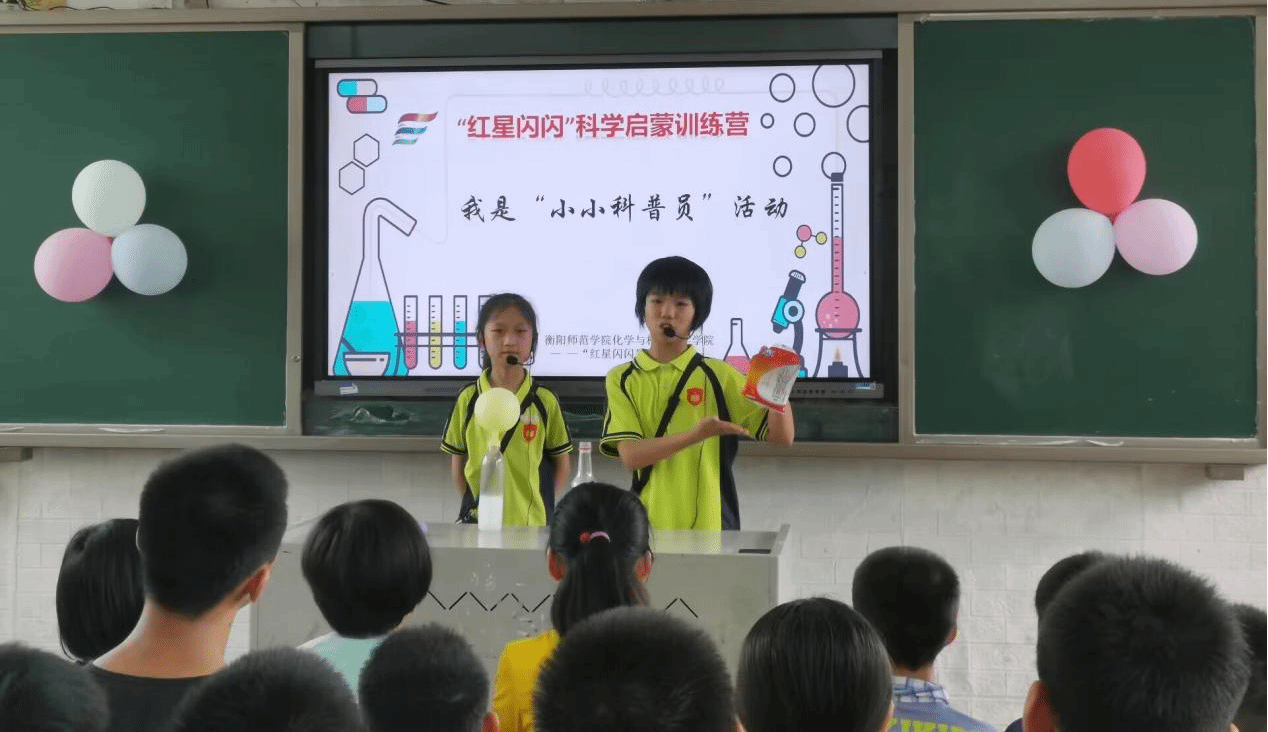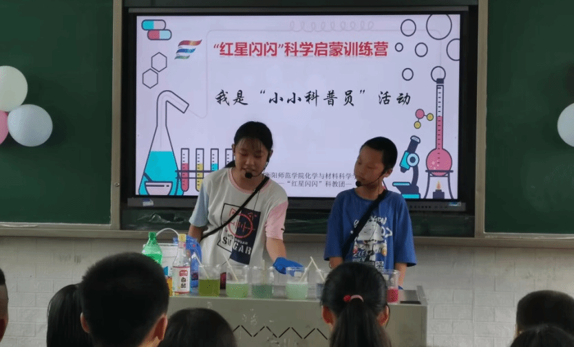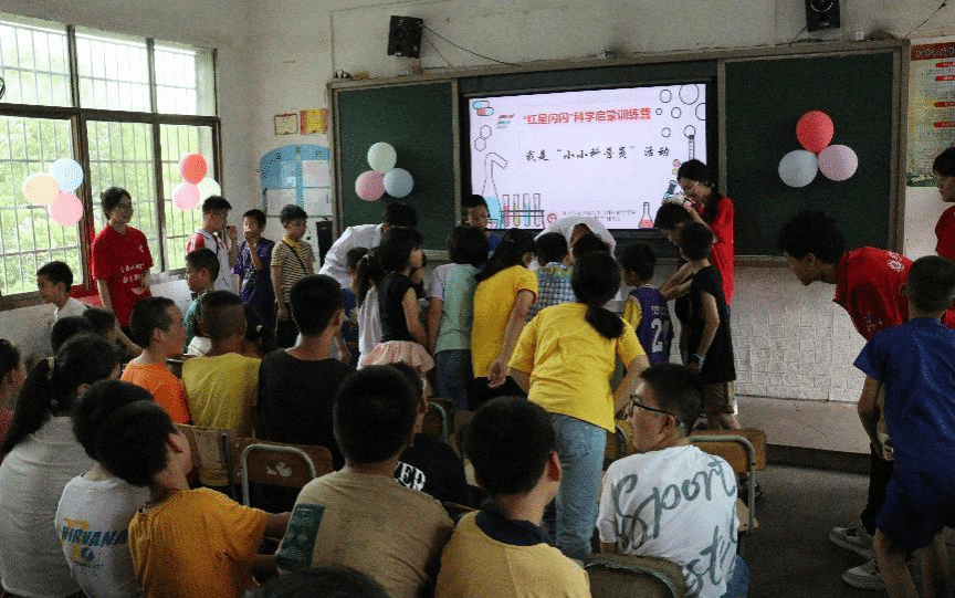此外,“红星闪闪”科教团在衡南县近尾洲联合学校中心小学还开展了“科技发明小故事”、“生活中的化学”、“化学趣味实验”等一系列的科学启蒙课,并以《科学与梦想》为主题在该校校园绘制了30余平方米的墙绘,旨在为乡村的孩子们营造一个学科学、爱科学、用科学、传科学的良好氛围。