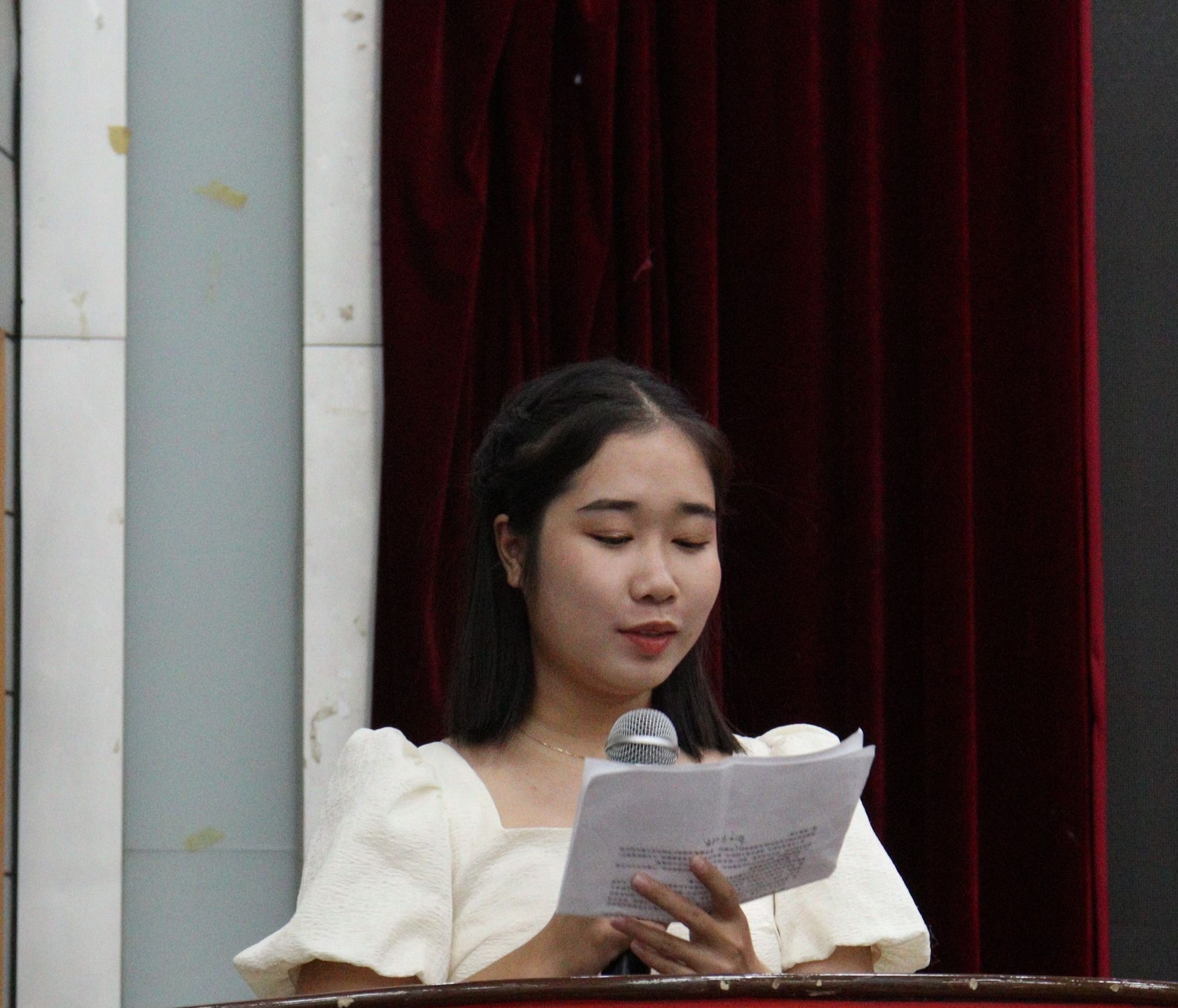 教师代表陈文老师与同学们分享了自己对大学生活的深刻感悟:一是要做一个有道德的人,大学不仅仅是学习知识,更是要修炼自己的德行;二是要学会规划生活;三是要做一个内心强大的人。老生代表潘蕊向同学们分享了自己对大学生活的心得体会,她提醒同学们要珍惜时光,以饱满的精神状态,严谨的学习作风去完成大学四年的学业。2304班彭雅琴同学作为新生代表发言,与同学们分享了祖辈和父辈用自己的力量传承家乡文化的故事,她立志要回到家乡用教育去振兴家乡,让青春之花绽放在祖国教育最需要的地方。