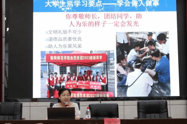 首先,唐升老师总结了前两天的新生军训成果,从“学会做人做事”和“养成良好的行为习惯”两个维度详细讲解了大学生活学习的要点。接着,她从大学学习和时间管理两个方面,对“新生该怎样合理度过大学四年”这个问题进行了指导。