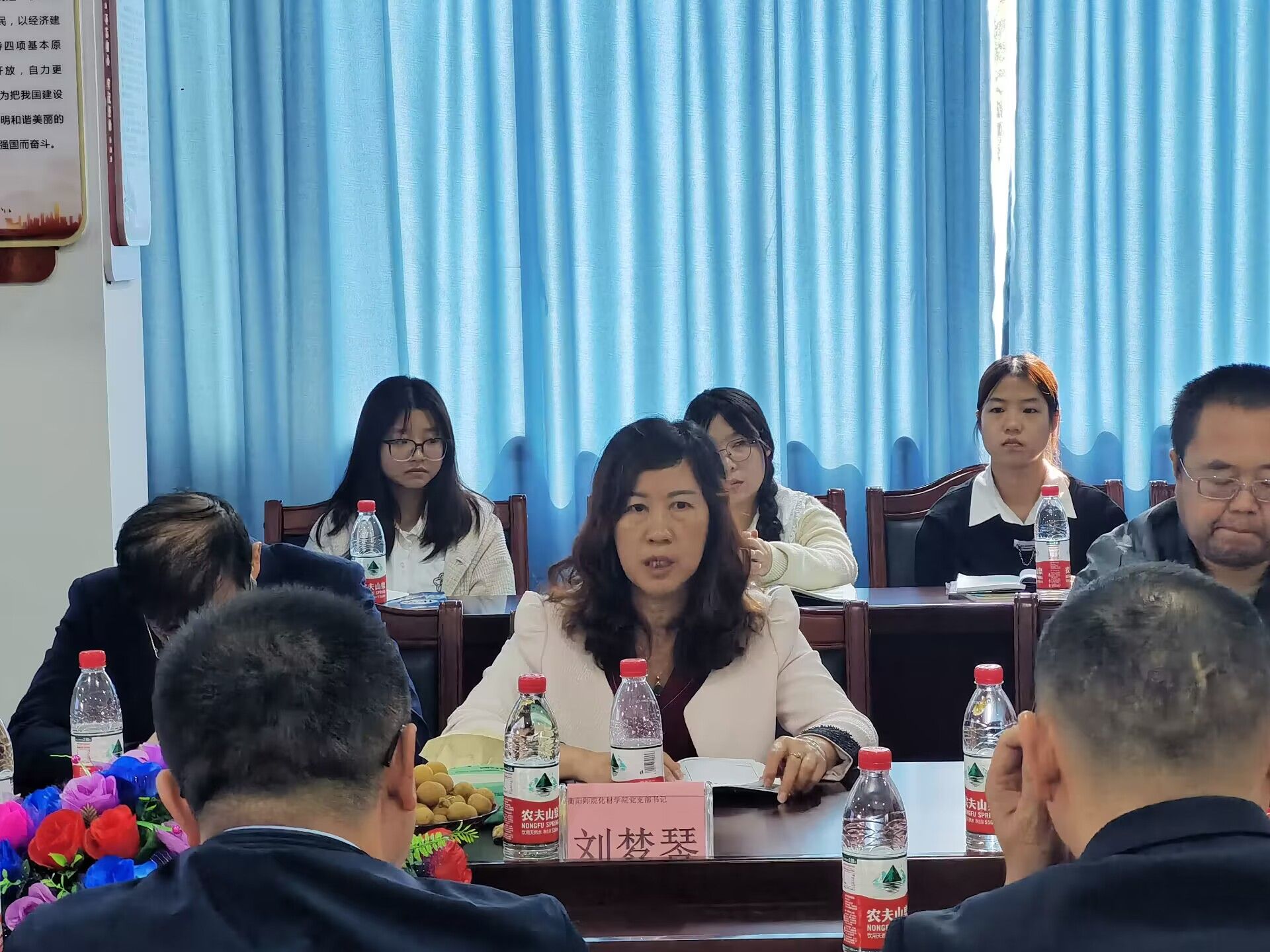 为深入了解我院2020级化学师范专业1班学生教育实习情况,督促实习生完善过程性材料,加强学院与实习基地之间联系,2023年10月30日,我院总支书记刘梦琴、院长许志锋、副院长付伟伟、孙俊彬、办公室主任邓胤龙等一行人前往衡阳市第十五中学,对我院2020级师范生教育实习工作进行检查,受到了衡阳市第十五中学校长刘家彪的热情接待,并全程陪同检查。