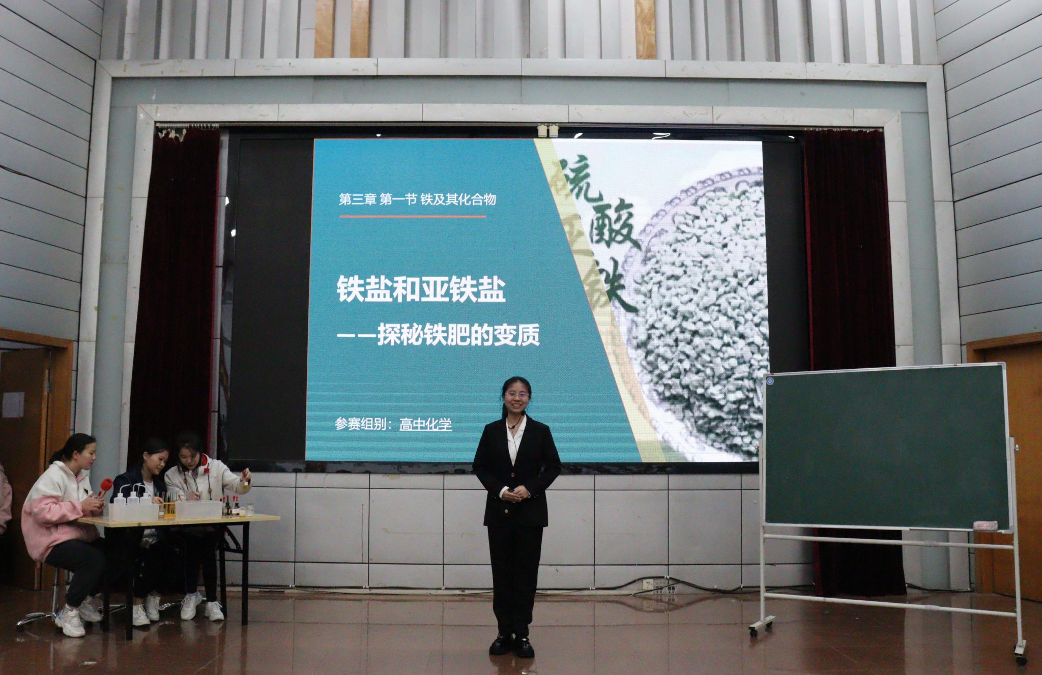 随后,为展现英国上市官网365师范生风采,2020级化学4班的尹琳琴同学进行了《铁盐和亚铁盐——探密铁肥的变质》片段教学展示。她从“果农的铁肥变质该怎么办”这一情境引入,让学生们在化学实验探究中明白了科学的道理,解决了果农们的难题。刘家彪校长现场进行了点评:“尹琳琴同学呈现了一个非常精彩的课堂片段,教学设计用心,教学深入浅出,让学生在轻松的氛围中达成了教学目标。”