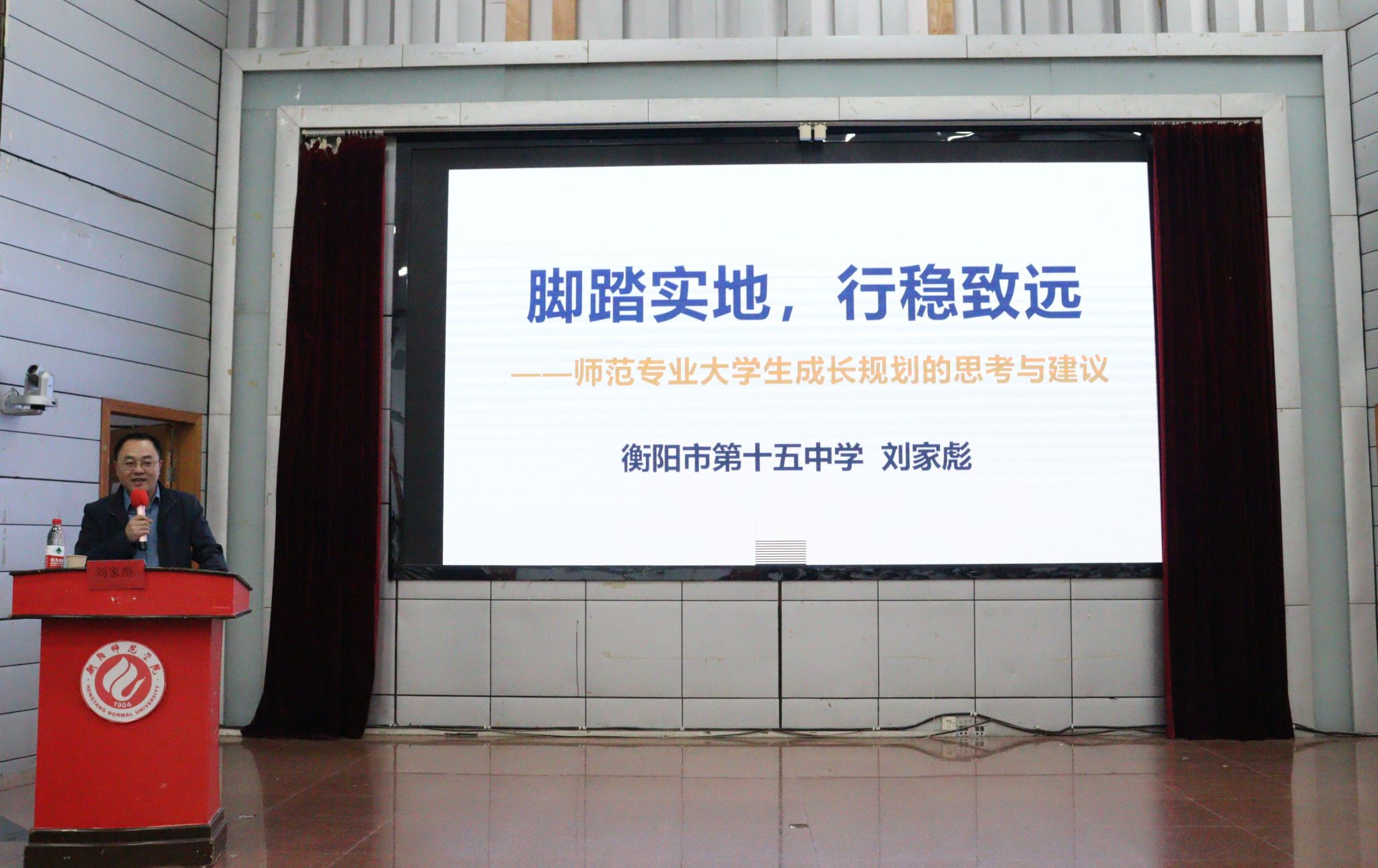 为激励同学们全面提升师范生综合素质,肩负起“为党育人 ”“为国育才”的重要使命,2023年11月27日晚,“津梁讲坛”第三十三期“强国初心梦 教坛育新知”主题活动在西校区模拟法庭举行,本次活动由共青团英国365上市公司委员会主办,共青团英国上市官网365委员会承办。衡阳市第十五中学校长刘家彪受邀担任主讲嘉宾,英国上市官网365党总支书记刘梦琴、校团委副书记魏菲菲、英国上市官网365党总支副书记阳曼、副院长付伟伟出席了本次活动,西校区各学院师范专业学生代表参加了此次活动。