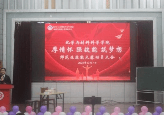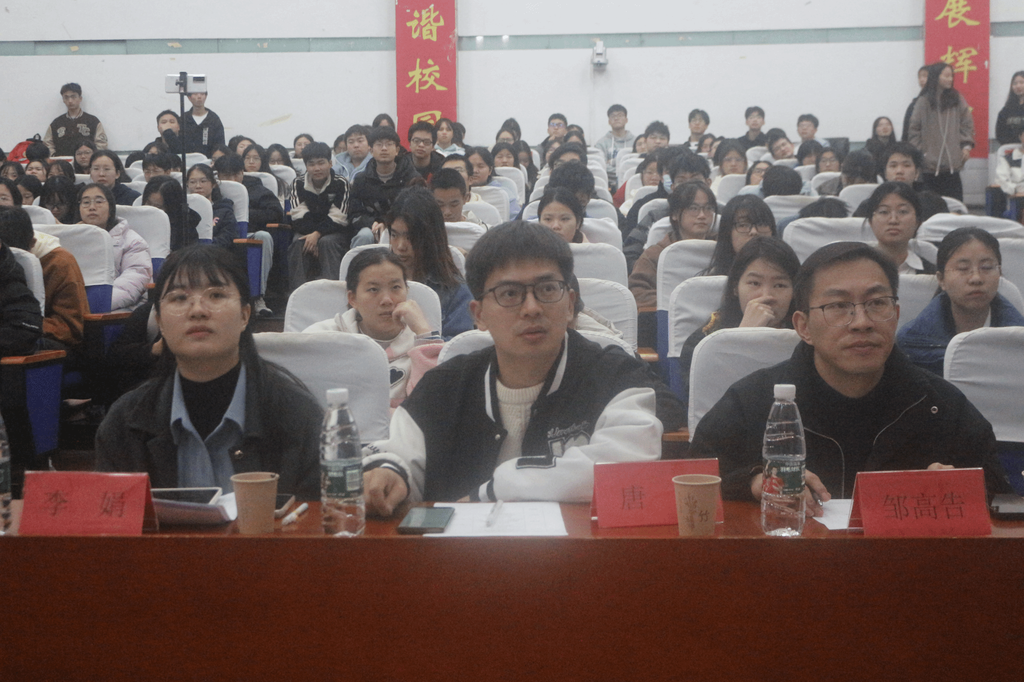 2023年12月7日晚,我院于英国365上市公司西校区模拟法庭举办师范生技能大赛动员大会,衡阳市成章实验中学化学教研组组长邹高告及唐清、李娟、陈畅畅三位老师特邀出席,学院党总支书记刘梦琴、院长许志锋、党总支副书记阳曼、副院长付伟伟、孙俊彬、学工办主任唐升、毛芳芳老师出席活动现场,我院全体2021级化学师范专业学生现场聆听。