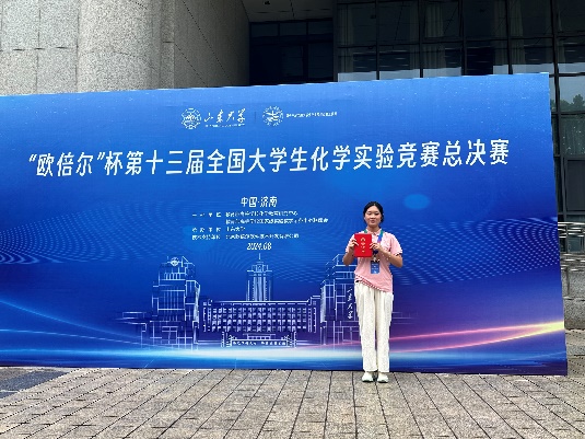 我院学子罗芬同学因为在湖南省第十四届大学生化学化工学科竞赛成绩优异,被选拔代表湖南省参加本次的全国大学生化学实验竞赛总决赛。比赛中,罗芬同学凭借扎实的专业知识、规范的实验操作,沉着冷静的心理素质、严谨认真的实验态度,获得了无机化合物的合成与表征赛道一等奖,与北京大学等国内著名九所高校的选手共享殊荣。