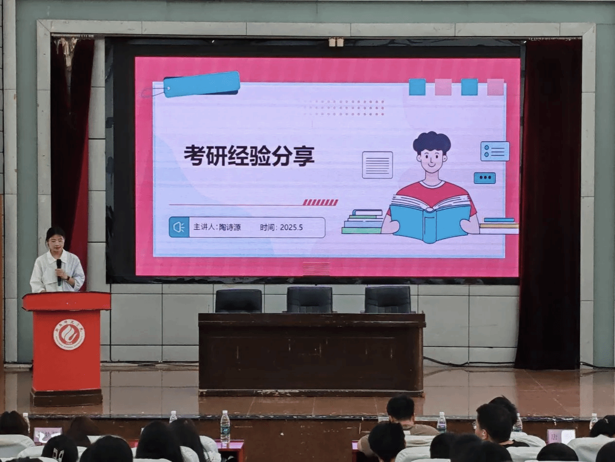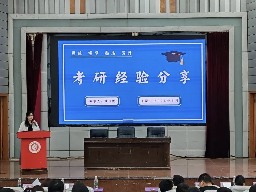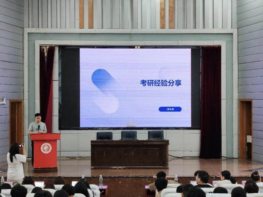 交流会上,四位2025届优秀毕业生陶诗源、欧佳妮、谢星怡、周永康倾囊相授。他们结合自身考研历程,从备考经验、资料筛选、学习方法等维度展开分享,紧扣考试大纲与录取院校情况,深入剖析考研择校要点,并给出切实可行的建议。在场同学认真聆听,收获颇丰。