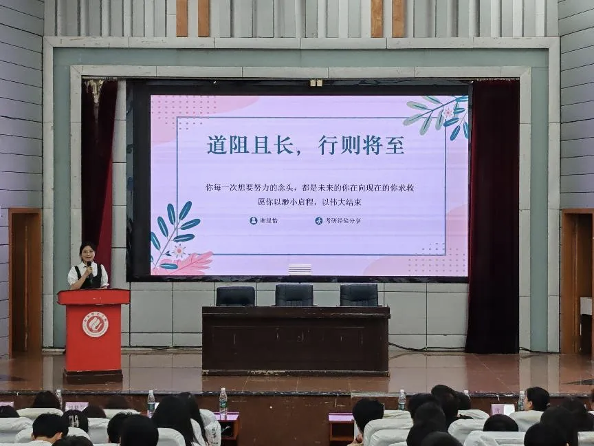本次交流会,首先由刘梦琴书记上台向同学们介绍2021级的考研情况:随着2025年全国硕士研究生招生录取工作收官,学院考研喜讯频传,2025届毕业生共392人,其中定向师范生120人。在非定向师范生272人中,有115人报考硕士研究生,报考率达42.27%,最终82人成功上岸,录取率高达71.30%。从分数段来看,400分以上有1人,350分以上12人,300分以上42人;按录取院校层次划分,考入985院校的有6人,211院校的有21人。尽管今年全国硕士研究生考试报考人数有所下降,但高分考生数量依然可观,学院考研报录比逐年递增,考研整体质量稳步提升。