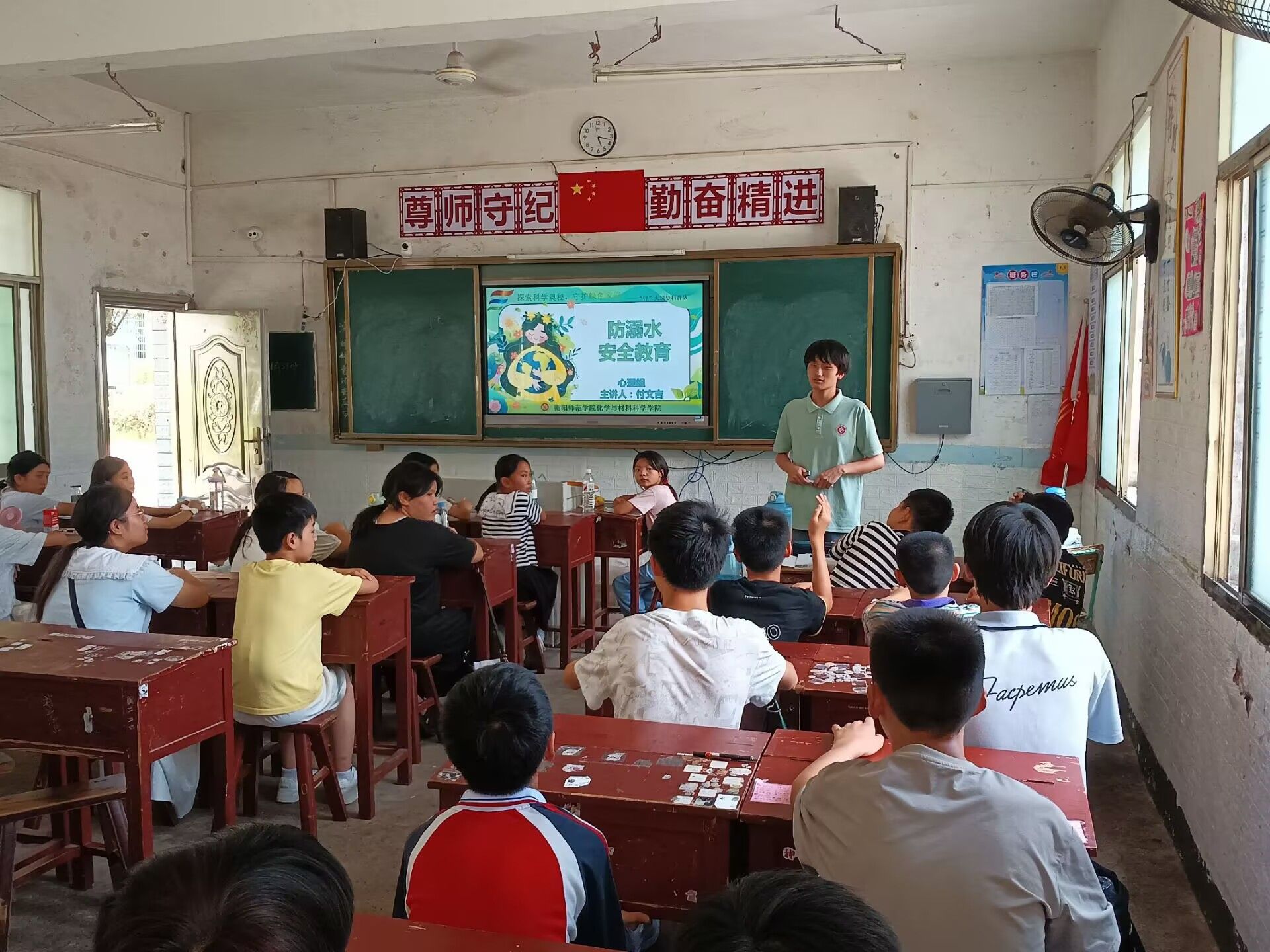7 月 8 日,“锌火筑梦” 科普队在衡阳市衡南县近尾洲镇蒸市初级中学的支教活动已到第三天。为帮学生们提高安全防范意识和自我保护能力,切实预防溺水事故,科普队开展了一堂生动又实用的防溺水安全教育课。