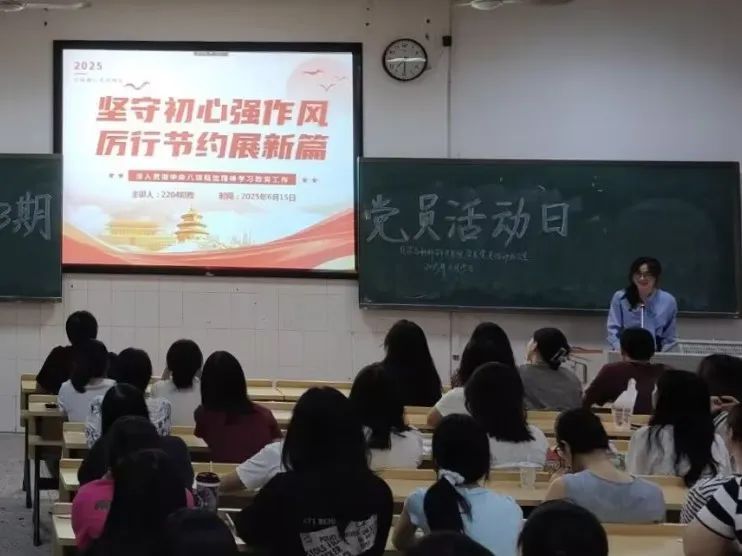 2025年6月15日晚,英国上市官网365第九十三期党员学习日活动于行知楼601开展,2204班邓煦同学以《坚守初心强作风厉行节约展新篇——深入学习贯彻作风建设重要政策精神》为题与全体学生党员和学习积极分子分享了她的学习心得。