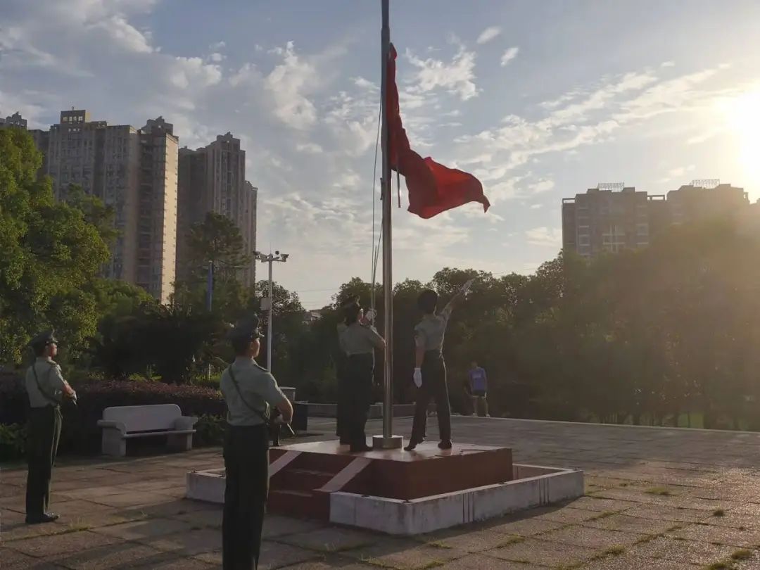 晨曦微亮,柔和的光线洒满新世纪广场。参加升旗仪式的学生整齐列队,教导队的队员们精神抖擞,护卫着五星红旗稳步向前。步伐坚定有力,每一步都透着对祖国的敬重。国歌响起,激昂的旋律在广场上空回荡。红旗迎风飘扬,仿佛在诉说着祖国的发展历程。这一瞬间,爱国之情在每个人心中升腾,激励着我们以青春之我,勇担时代重任,在知识的殿堂里求索奋进,在青春的赛道上拼搏向前,为祖国的繁荣富强积聚力量。