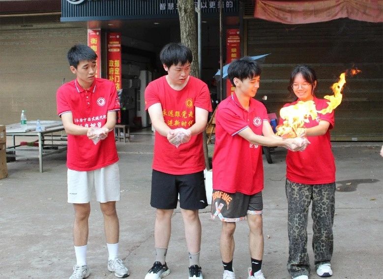 活动前期,队员们制作科普手册、设计科学魔术秀、出发前的一次次排练,每一个环节都注入了队员们对科学知识送进乡村大地的热情。天刚蒙蒙亮,队员们便背上物资向镇上出发,做好迎接准备,随着村民们的陆续到来,队员们围绕农药化肥、食品蔬果、生活用火等方面的安全常识展开了宣讲,“水果有一点点发霉,削掉可以吃吗?”“农村里烤火会存在哪些安全隐患呢?”“所有的塑料瓶子都可以永久使用吗?”针对村民们常见的认识误区,队员们进行了一一解答,号召村民们平时多关注生活常识,学习科学,相信科学。为了活跃现场氛围,队员们带来的科学魔术秀《火焰掌》,火焰在队员们手掌间传递、跳跃,引发了更多村民的围观。团队还开展了有奖竞答环节,让村民们在活动中提高对科学的认识,增强科学生活的意识。