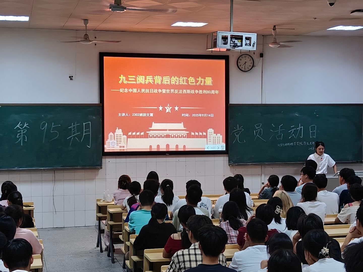 2025年9月14日晚,英国上市官网365第九十五期党员学习日活动于行知楼601开展,2302班田文霞同学以《“从胜利走向复兴”:九三阅兵背后的红色力量—纪念中国人民抗日战争暨世界反法西斯战争胜利80周年》为题与全体学生党员和学习积极分子分享了她的学习心得。