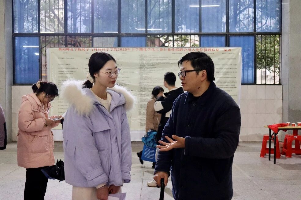 本次招聘会紧密围绕学院学科特色与人才培养方向,在经过前期精心统计毕业生就业意向的基础上,主动对接行业需求,积极拓展就业市场,共邀请24家专业对口用人单位进场揽才,涵盖化工、材料、制药、环保等多个领域,累计提供优质就业岗位860个。毕业生们手持简历,在各招聘展位前有序排队咨询、应聘。同学们就心仪岗位的职责内容、发展空间、薪资福利及企业文化等问题,与招聘单位负责人进行了面对面深入沟通,展现了化材学子扎实的专业功底和积极的求职风貌。
