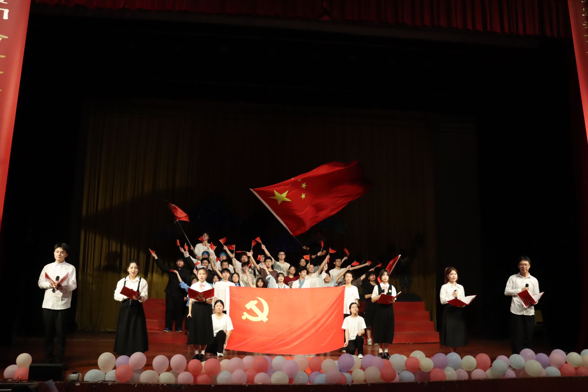 在“造炬成阳”篇章,龚文静、王玮等同学深情演绎情歌串烧《心跳不止,曲短情长》,让观众沉浸于视听盛宴;2208班、2304班和主持队的朗诵《奔跑吧青春,不负韶华》用声音赓续红色血脉,绽放青春活力;刘乐乐、谭荧等同学在舞蹈串烧《青春的梦想》中的动感舞步,展现了青春的活力与梦想。