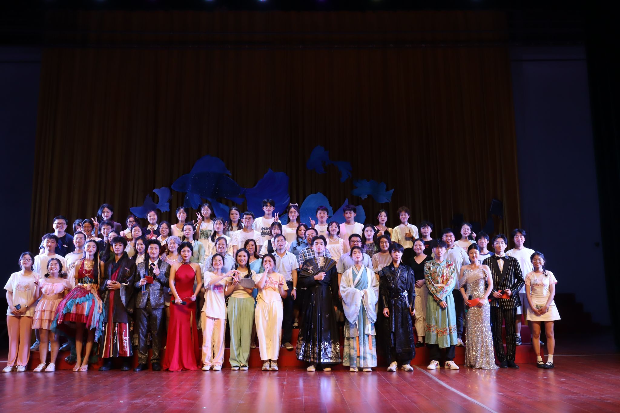 “奔赴山海”篇章在张国梁等同学的朗诵《永不褪色的日子》中开启,一字一句思潮滚滚,让青春的记忆永远闪耀;朱晴、陈继、李嘉元三位同学用歌曲串烧《属于盛夏的告别》述说离别,将友情和爱情的美好瞬间化作音符;孙俊彬副院长与范佳琪同学的演唱歌曲《呼伦贝尔大草原》引领观众体验自由与宽广的境界,感受草原的风声与野花的芬芳。最后,2305班与2308班的同学们合唱《想见你想见你想见你》,用歌声传递对毕业生的爱与思念,真挚感人。台下欢呼声跃起,掌声雷动。