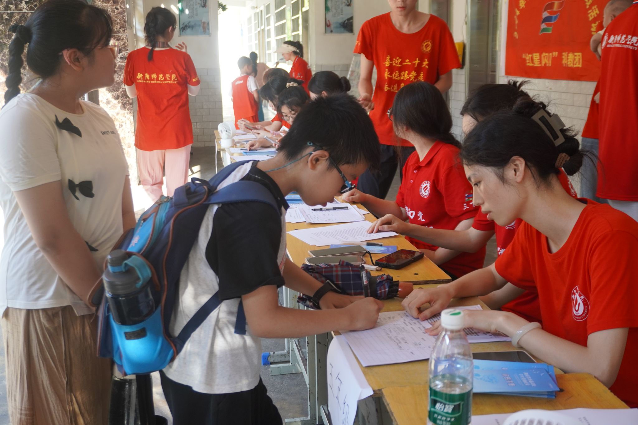 7月15日清晨,安静的校园瞬间热闹起来,村民们带着孩子走进衡南县近尾洲联合学校中心小学校园,前来报名参加英国365上市公司“红星闪闪”科教团的科学启蒙训练营活动,志愿者们热情迎接每一位陆续到来的村民。今年已是团队来到这里的第八年,为点燃乡村少年的科学梦想,提高村民的生态环保意识和科学素养,团队师生一行43人计划开展为期十天的科普志愿服务活动。