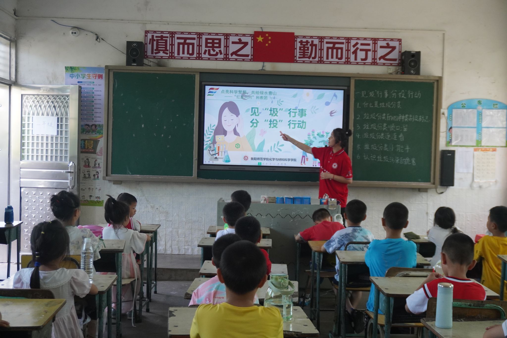 烈日当空,夏日炎炎,孩子们报名的热情不减,有些小朋友已是第5次参加团队的志愿活动,看见熟悉的志愿者他们兴奋不已。为家长和学生讲解课程安排后,班主任们便引导学生进入各自的教室开展新生见面会,班级同学进行了面对面的交流并选出了班委,在班主任、副班主任的带领下,通过团队合作游戏、才艺展示等方式,营造了积极融洽的班级学习氛围。下午各年级开设的《见“圾”行事,分“投”行动》《追寻蓝天下的幸福》《无拘无“塑”》等环保科普课,引起了孩子们对家乡环境保护问题的关注,志愿者们从化学的角度耐心地为孩子们讲解“什么是垃圾分类”“大气污染会引起哪些环境问题”“什么是白色污染”等问题,引导他们树立和践行“绿水青山就是金山银山”的理念。倡导大家要保护环境,从我做起,从身边的小事做起,激励孩子们学好科学文化知识,为加快美丽乡村建设的步伐而努力。这是团队科学启蒙第一课,旨在为接下来生态环保科普课程和活动的有效开展做好铺垫。