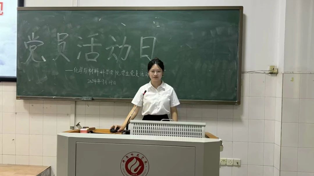 2024年9月29日晚,我院第八十期党员活动日在行知楼601举行,2021级应化2班李依丹同学作为本期主讲人,与全体学生党员和入党积极分子分享了自己的学习心得。