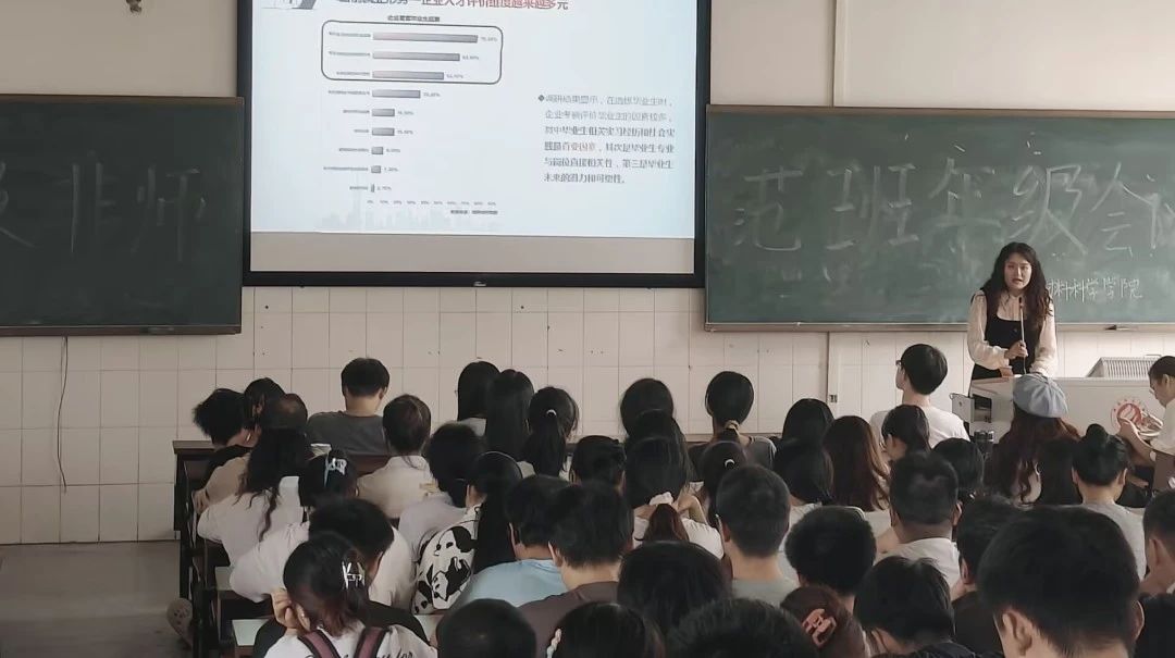 在对我院近三年毕业生就业去向数据进行了详尽且深入的对比分析后,阳曼书记针对毕业生群体提出了四项具体且富有指导性的要求,涵盖了生涯规划、行业选择、简历制作以及面试技巧等关键领域。这一举措旨在帮助毕业生们更加明确个人发展方向,优化职业路径选择,并提升求职过程中的竞争力与成功率。首先,在生涯规划方面,阳曼书记强调无论是师范生还是非师范生,均需量身定制一套科学、合理的职业发展规划,确保个人职业目标清晰明确,并据此规划出一条高效的学习与实践路径,以期在激烈的人才市场中脱颖而出。再者,在关于行业选择的问题上,她基于我院毕业生的就业实例,着重指出,学生应当突破教师及化工等传统行业的局限,无论其是否为师范教育专业的学生,均应秉持开放视野,勇于探索并涉足多元化的就业领域。此外,在简历制作环节,她建议学生应紧密结合职业需求,精心打造简历,以充分展现个人竞争力。最后,阳曼书记还就礼仪礼节及面试流程等内容进行了简要说明,并鼓励学生们积极与老师沟通交流,共同面对挑战,携手规划并铺就个人的未来道路。