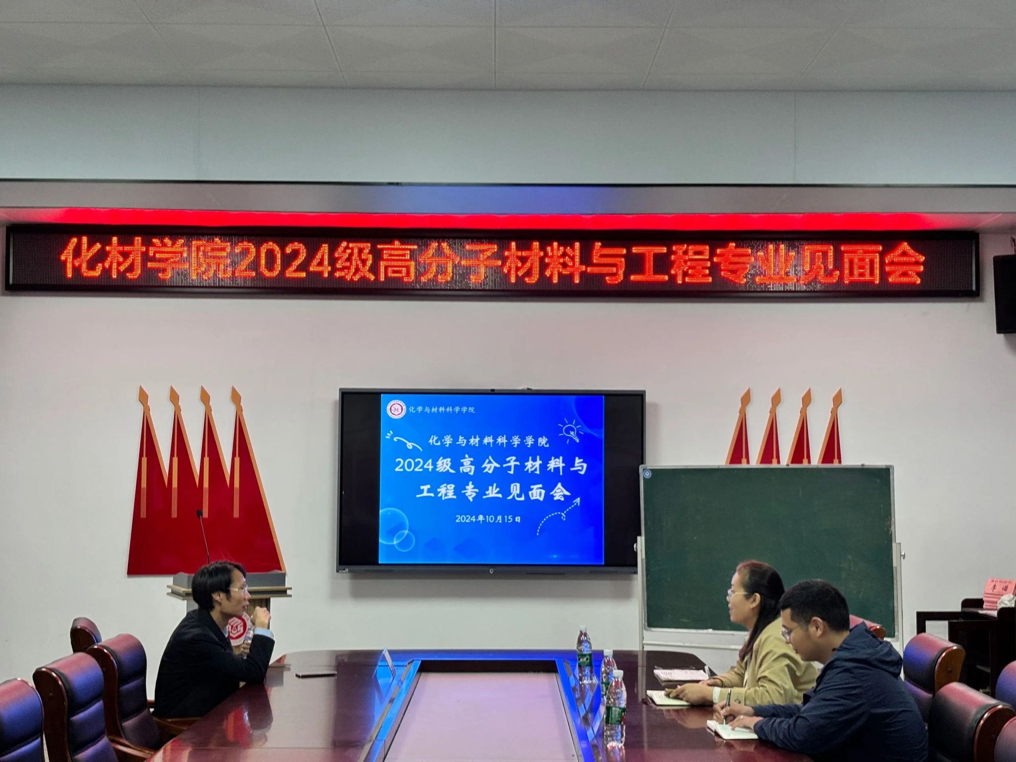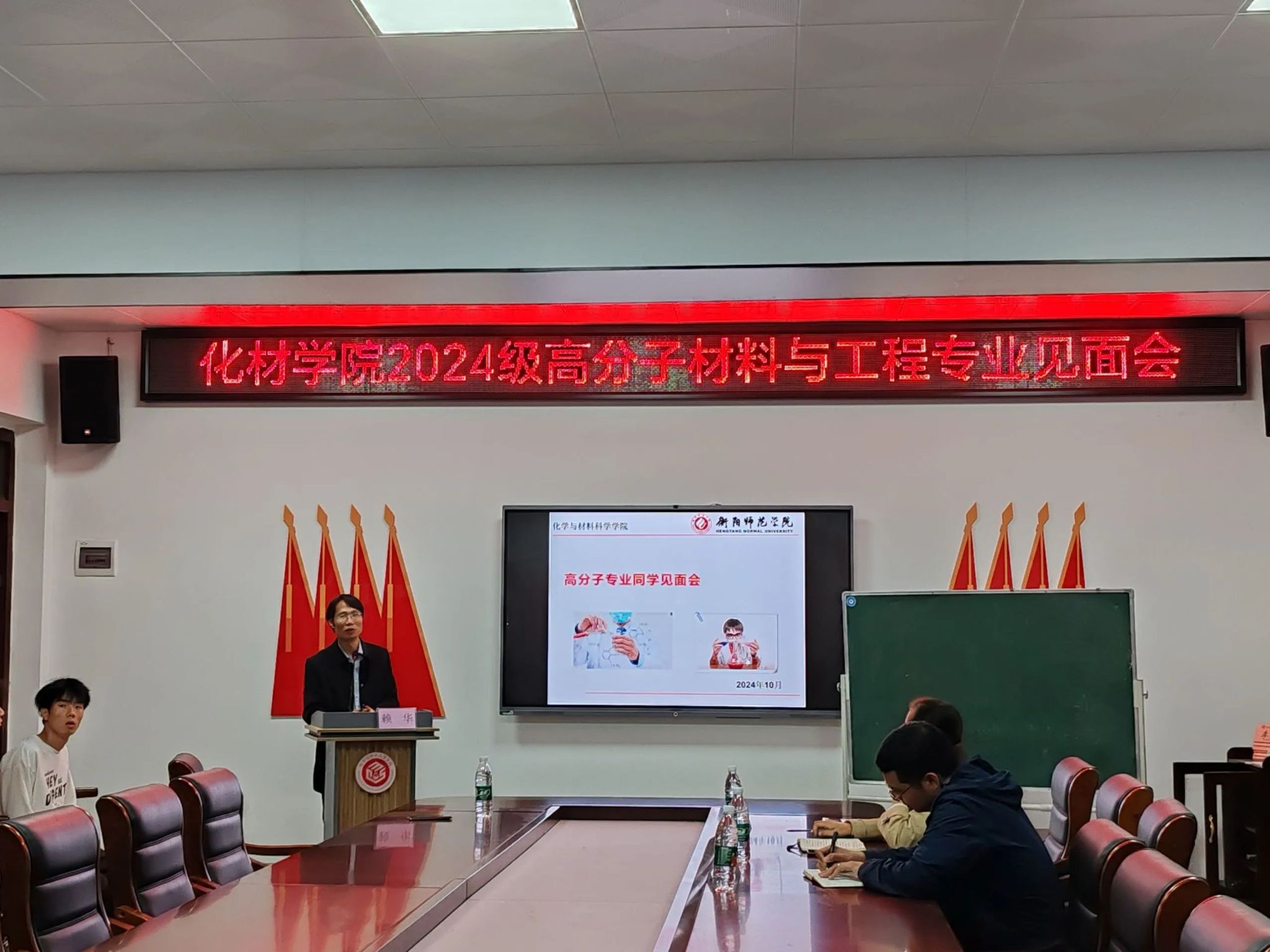 为推动师生之间的交流与互动,助力我院新生更好地融入大学生活,做好大学生涯规划,我院于2024年10月15日晚,在化材楼105会议室举办了高分子材料与工程专业见面会。此次会议由高分子专业负责人赖华老师担任主讲,学院党总支副书记阳曼、2024级辅导员唐波湘老师以及2408班班主任颜川老师应邀出席,2024级高分子专业全体新生到场聆听。