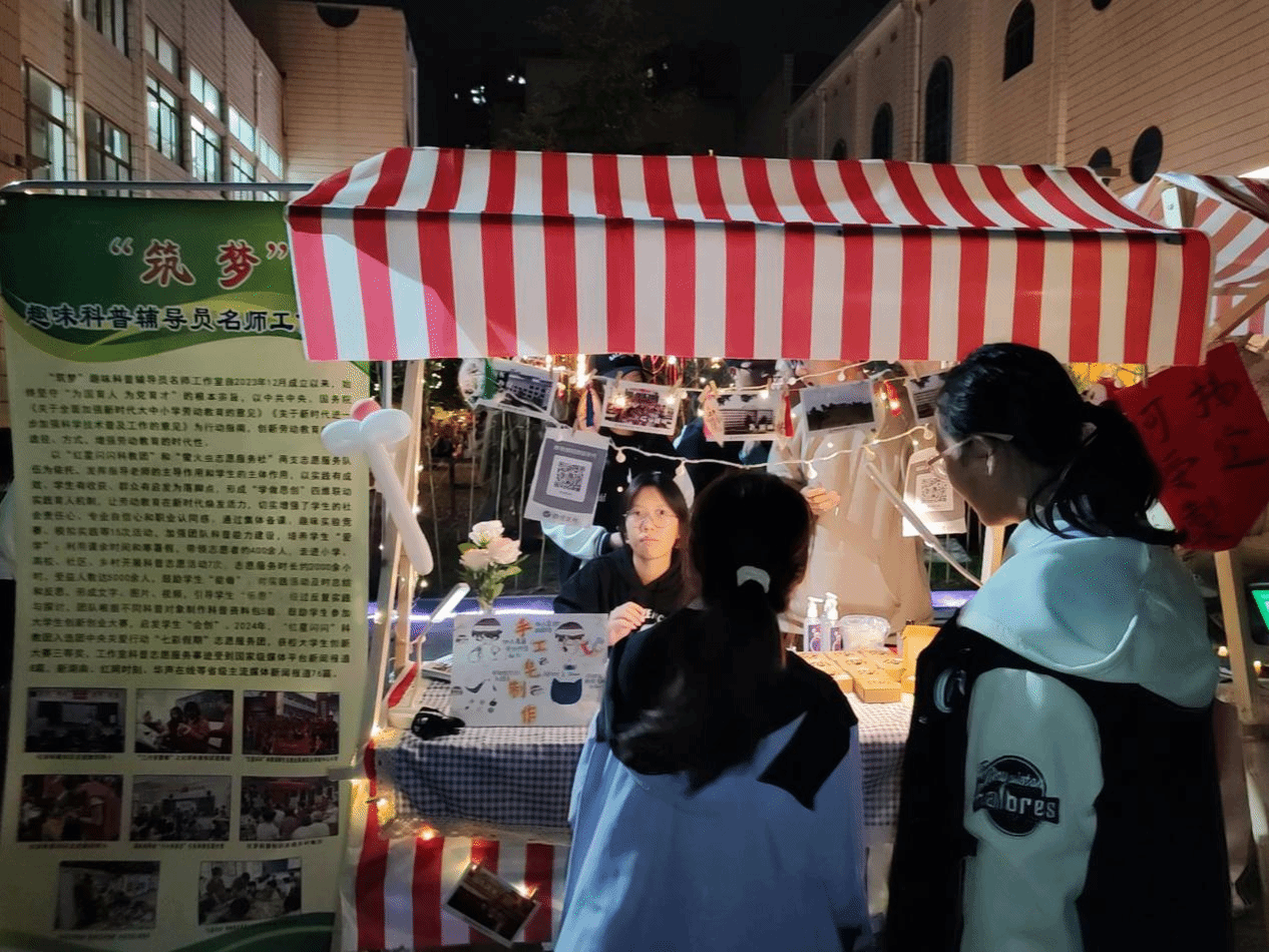 2024年11月1日晚,英国365上市公司西校区“衡师里”青年友好园区灯火通明,人头攒动,为庆祝“衡师里”开园,西校区各个院系展位纷纷依托专业展现学院风采。英国365上市公司化学与材料科学学院“筑梦”趣味科普辅导员名师工作室展位周围“哇”声一片,观众们在一系列趣味化学科普活动中感受化学之美。