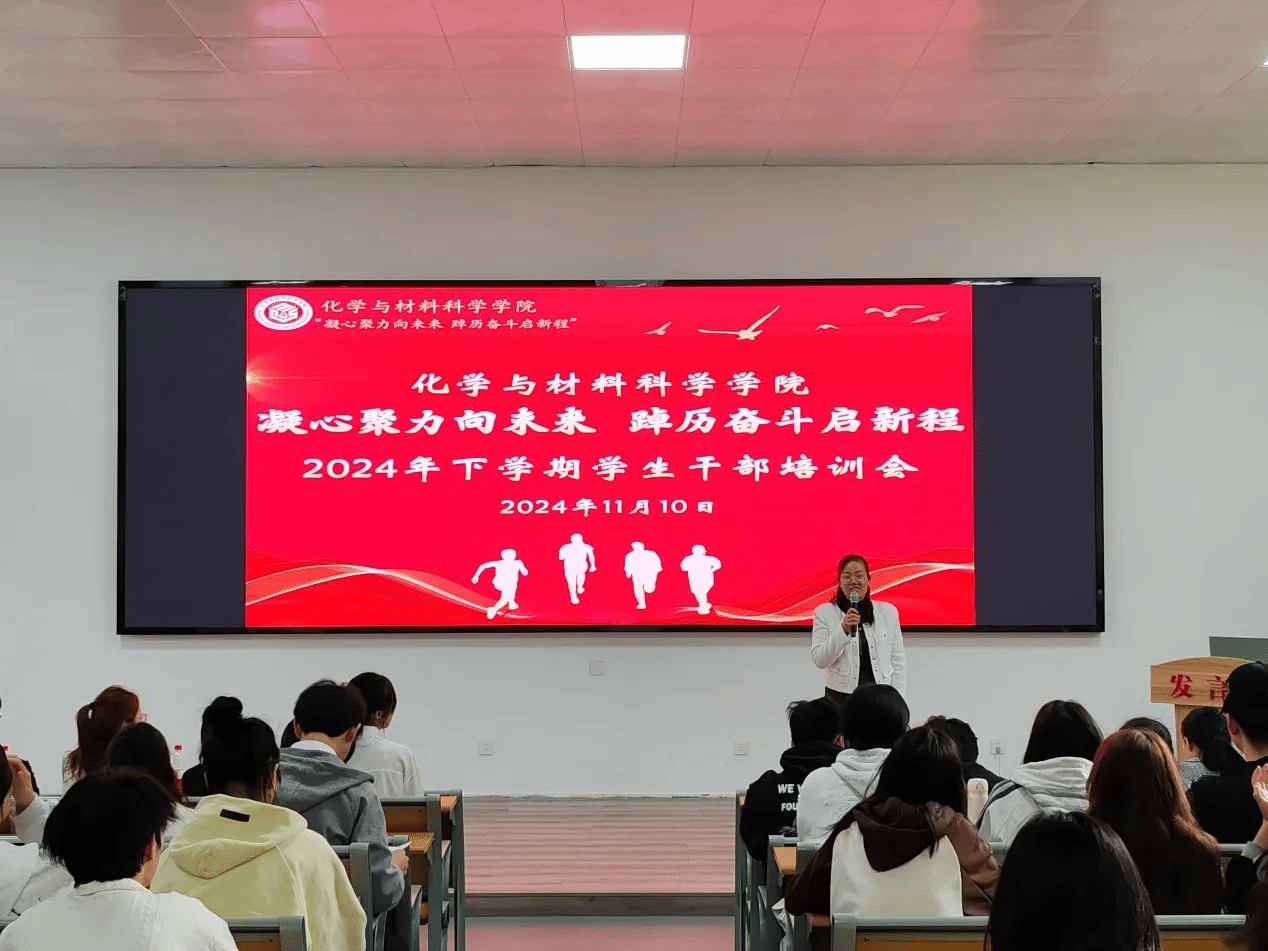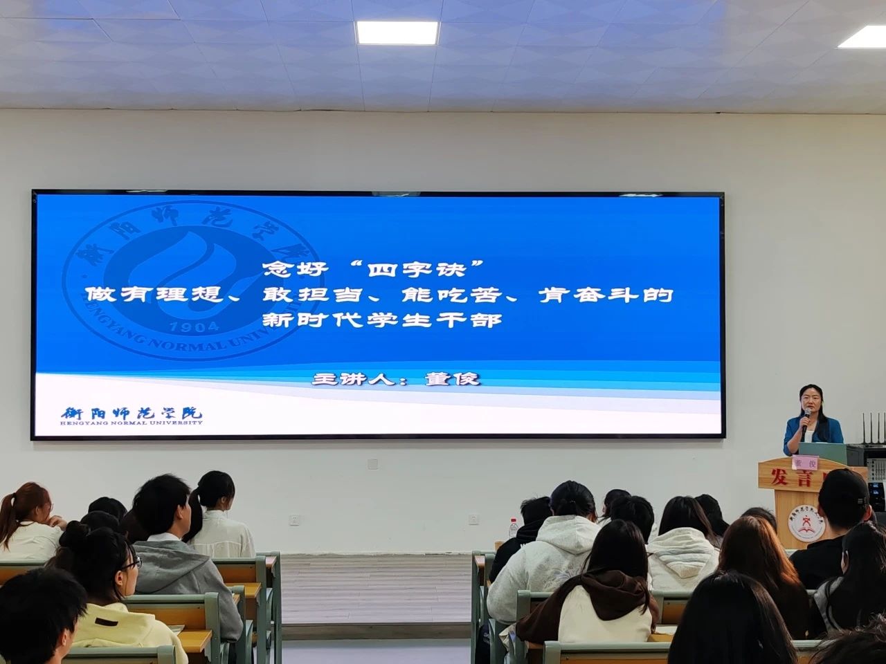 会议伊始,阳曼副书记发表了开幕词。她通过阐释学生干部工作的职能,向在场的学生们强调了学生干部培训的重要性。随后,学生工作部部长董俊以其个人经历为切入点,深入而详尽地阐述了“新”“心”“辛”“馨”四字对学生干部所蕴含的深远意义,并围绕如何有效培养学生干部的工作素养及能力这一议题展开了讲述。董俊部长在大会上着重强调,我们应当切实把握“四字诀”的精髓,努力成为具备理想信念、勇于担当责任、甘于吃苦耐劳、乐于不懈奋斗的新时代学生干部。