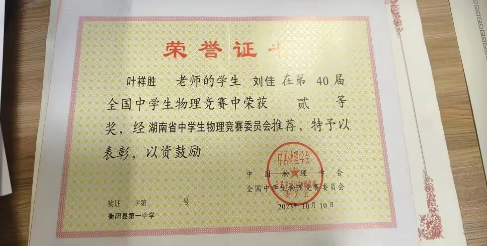 叶老师对物理教学的热爱,也深深感染着学生。他的学生蒋熠帆,原本对物理兴趣寥寥,在叶老师的引导下,逐渐被物理的魅力吸引,成绩飞速提升,还立志投身物理科研。后来,蒋熠帆在学校物理竞赛中获一等奖的好成绩。领奖时,他满含感激地说:“是叶老师点燃了我对物理的热爱,没有他,就没有现在的我。”