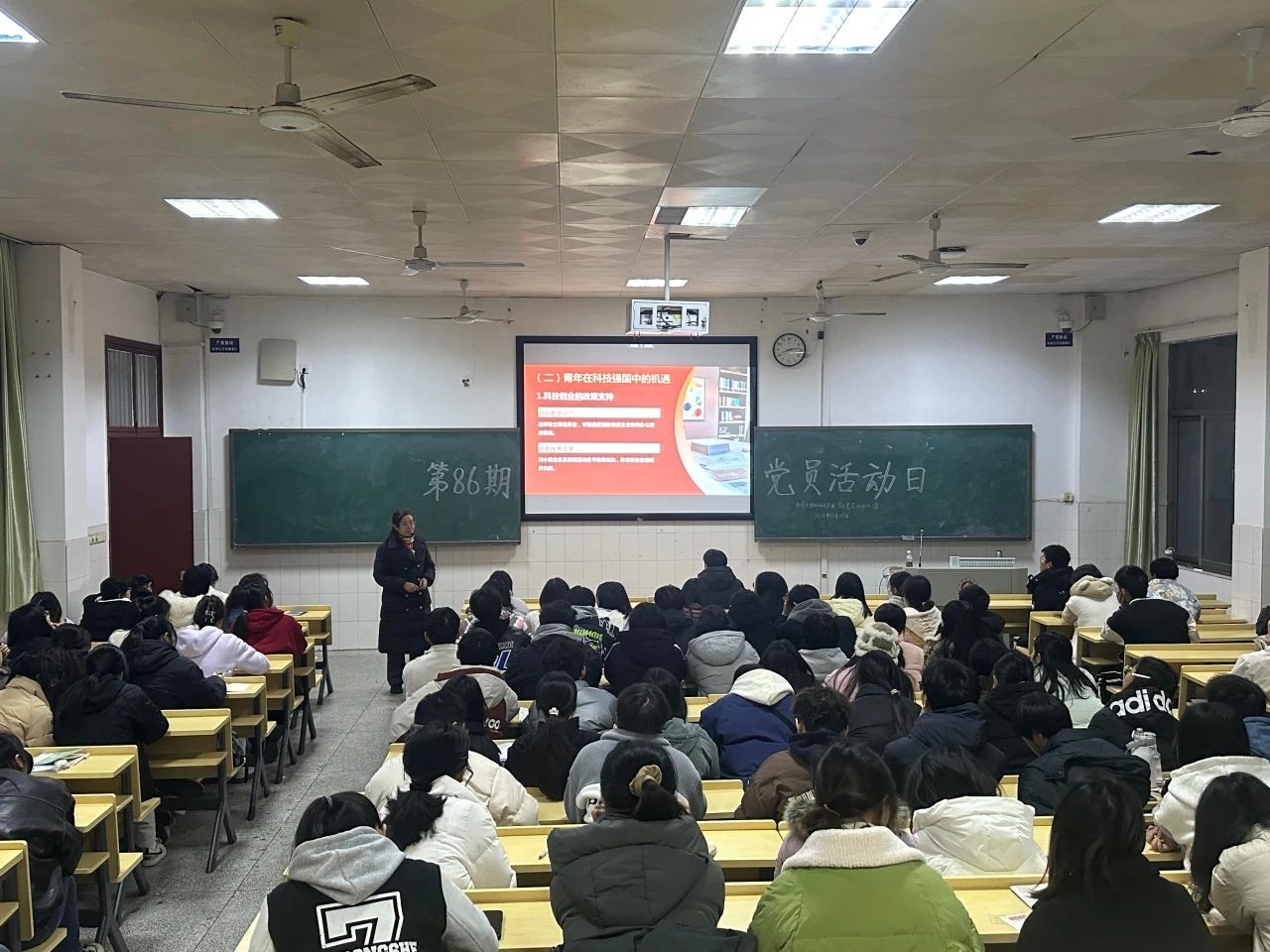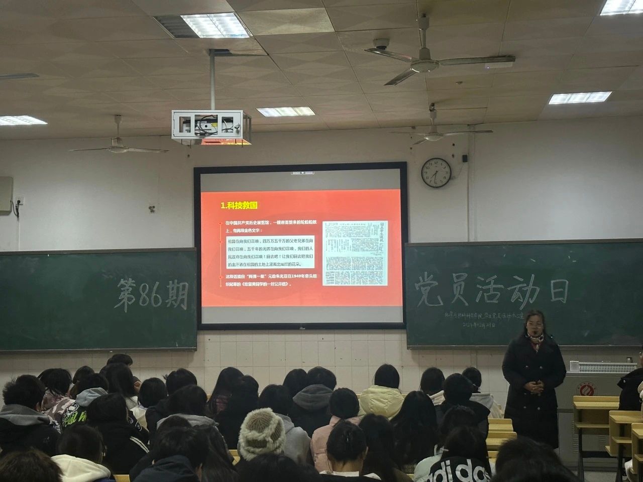 2024年12月29日晚,第86期党员学习日活动于行知楼601开展,英国上市官网365党总支副书记阳曼老师以《科技强国,青年何为》为题为全体学生党员、入党积极分子授课。