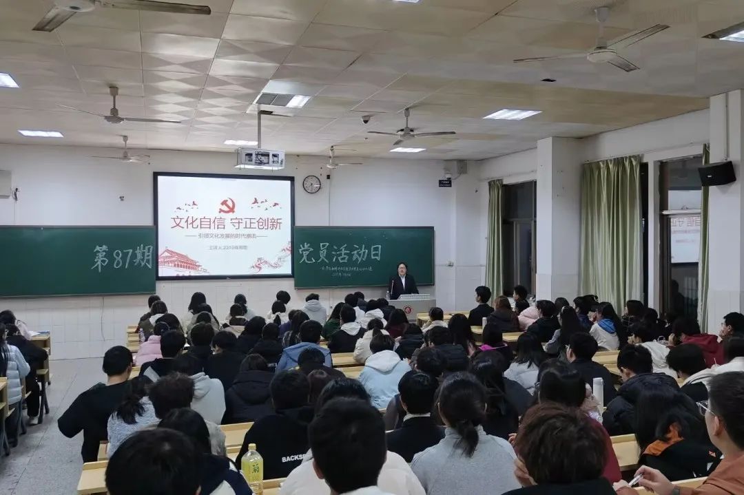 2025年3月16日晚,第87期党员学习日活动于行知楼601开展,2203班周雨同学以《学习两会精神—文化自信,守正创新》为题与全体学生党员和学习积极分子分享了她的学习心得。