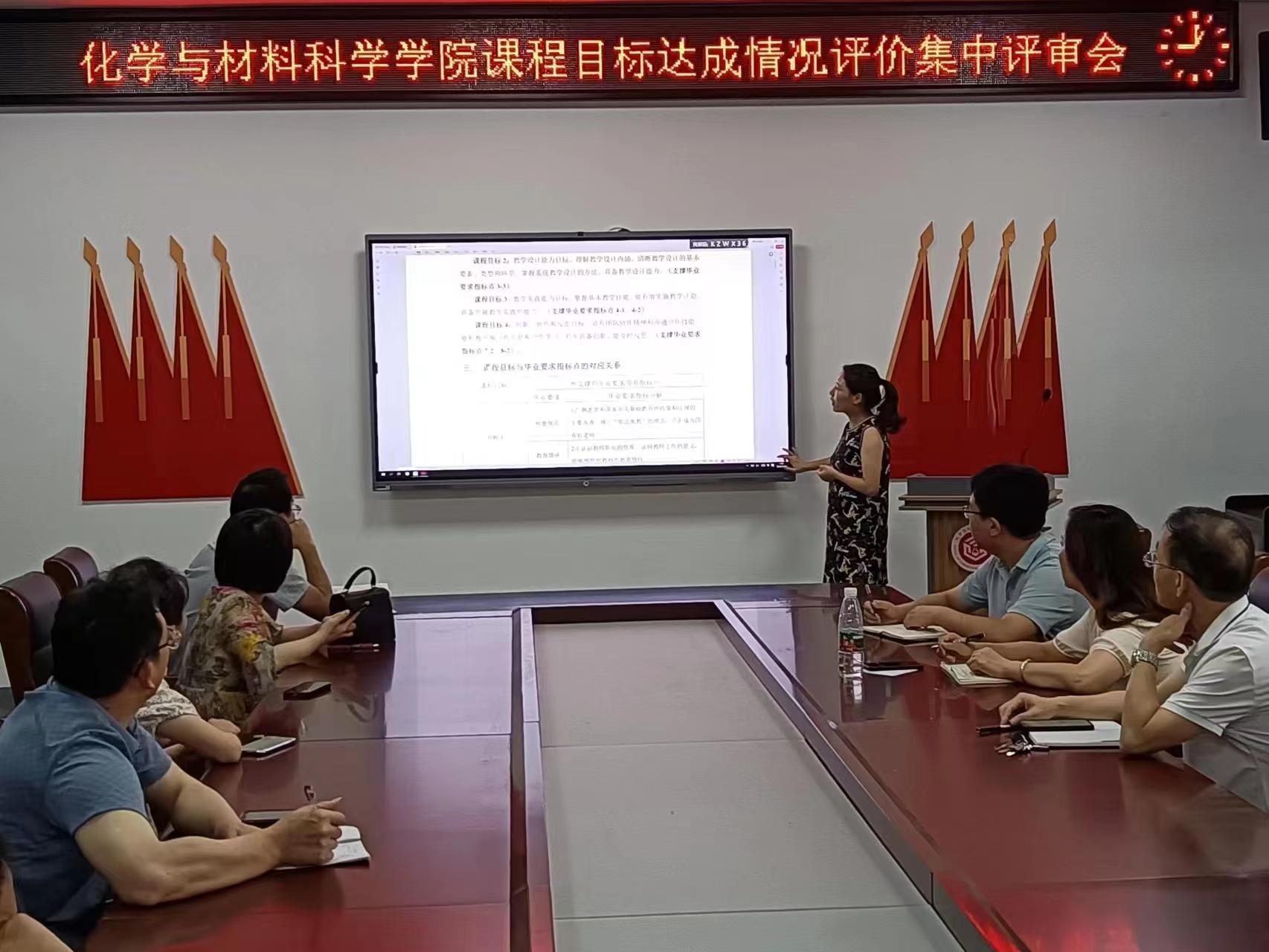 首先,毛芳芳等5位教师对自己所教课程的达成度、存在的问题和改进措施进行了汇报。5位老师严格按照专业认证的标准和理念,从课程目标的设置、毕业要求指标点的关联度和考核环节的设置等方面进行了全面的分析和总结,分析合理,整改措施符合学生实情。5位教师所教课程包含了教师教育课程、专业基础理论课程和实践课程,具有较高的代表性。其次,课程目标达成评价小组对本学期化学专业核心课程达成度分析报告进行审核。最后,课程目标达成情况评价小组经讨论研究后对本学期各门课程达成评价分析情况进行了全面总结,提出了相应的整改措施。